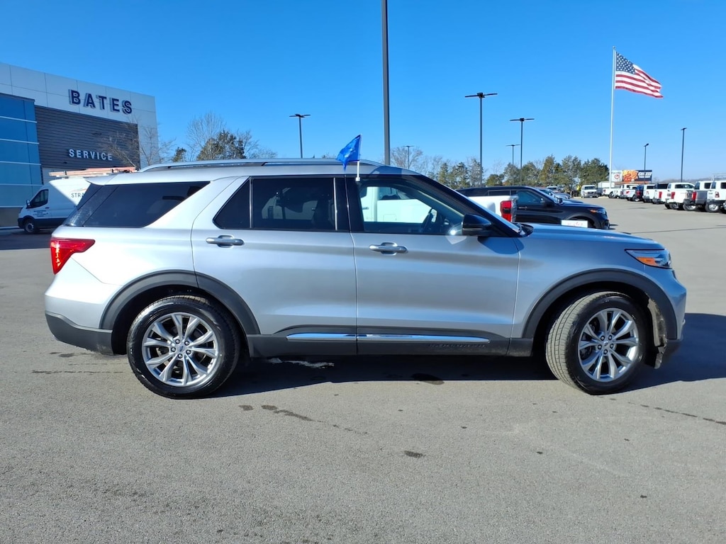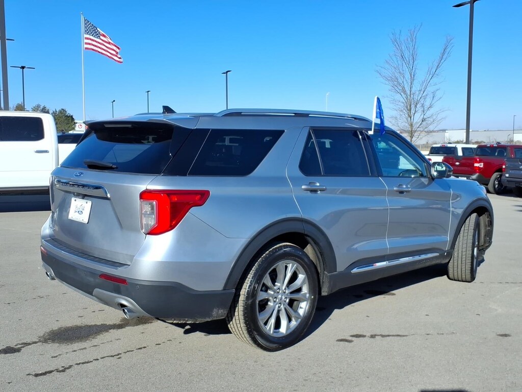 Silver Metallic 2023 Ford Explorer Limited RWD 10-Speed Automatic 2.3L EcoBoost I-4 **ONE OWNER**, NO ACCIDENTS!!, BACKUP CAMERA, ALUMINUM WHEELS, BLUETOOTH, 110V/150W AC Power Outlet, 12 Speakers, 20" Premium Painted Aluminum Wheels, 3rd Row PowerFold Seat, 3rd row seats: bench, 4-Wheel Disc Brakes, 4G LTE Wi-Fi Hotspot Credit, ABS brakes, Air Conditioning, Alloy wheels, AM/FM radio: SiriusXM, Auto High-beam Headlights, Auto Start-Stop Removal (DISC), Auto-dimming Rear-View mirror, Automatic temperature control, Brake assist, Bumpers: body-color, Compass, Delay-off headlights, Driver door bin, Driver vanity mirror, Dual front impact airbags, Dual front side impact airbags, Electronic Stability Control, Equipment Group 301A, Exterior Parking Camera Rear, FordPass Connect, Four wheel independent suspension, Front anti-roll bar, Front Bucket Seats, Front Center Armrest, Front dual zone A/C, Front fog lights, Front reading lights, Fully automatic headlights, Garage door transmitter, Heated door mirrors, Heated front seats, Heated rear seats, Heated steering wheel, Illuminated entry, Knee airbag, Leather Heated/Ventilated Captain's Chairs, Leather steering wheel, Limited Convenience Package, Low tire pressure warning, Memory Driver's Seat, Navigation System, Occupant sensing airbag, Outside temperature display, Overhead airbag, Overhead console, Panic alarm, Passenger door bin, Passenger vanity mirror, Power door mirrors, Power driver seat, Power Liftgate, Power passenger seat, Power steering, Power Tilt/Telescoping Steering Column, Power windows, Radio data system, Radio: B&O Sound System by Bang & Olufsen, Rain sensing wipers, Rear air conditioning, Rear anti-roll bar, Rear reading lights, Rear window defroster, Rear window wiper, Remote keyless entry, Roof rack: rails only, Security system, Sideview Mirrors w/Gloss Black Caps, Speed control, Speed-sensing steering, Speed-Sensitive Wipers, Split folding rear seat, Spoiler, Steering wheel mounted audio controls, SYNC 3 Communications & Entertainment System, SYNC 3/Apple CarPlay/Android Auto, Tachometer, Telescoping steering wheel, Tilt steering wheel, Traction control, Trip computer, Variably intermittent wipers, Ventilated front seats, Voice-Activated Touchscreen Navigation System.