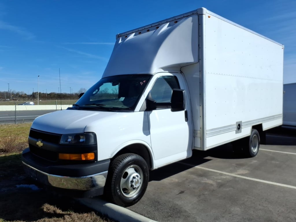 Summit White 2022 Chevrolet Express 3500 Work Van Cutaway RWD 6-Speed Automatic HD Electronic with Overdrive 6.6L V8 **ONE OWNER**, NO ACCIDENTS!!, 2 Speakers, 3.73 Rear Axle Ratio, 4-Wheel Disc Brakes, ABS brakes, Air Conditioning, AM/FM radio, Antenna Equipment, Bluetooth® For Phone, Body Soft-Mount Donut & Bolt, Cruise Control, Delay-off headlights, Driver & Front Passenger High-Back Bucket Seats, Driver Convenience Package, Driver door bin, Driver's Seat Mounted Armrest, Dual front impact airbags, Dual front side impact airbags, Dual Rear Wheel Configuration, Electronic Stability Control, Engine Cover Console w/Swing-Out Storage Bin, Exterior Parking Camera Rear, Front anti-roll bar, Front Bucket Seats, Front Chrome Bumper w/Step-Pad, Front wheel independent suspension, Fully automatic headlights, Heavy-Duty Locking Rear Differential, Inside Rearview Mirror w/Rr Vision Camera Display, Leather-Wrapped Steering Wheel, Low tire pressure warning, Occupant sensing airbag, Overhead airbag, Passenger cancellable airbag, Passenger door bin, Passenger seat mounted armrest, Power Convenience Package, Power Door Locks w/Lock-Out Protection, Power steering, Power Windows, Preferred Equipment Group 1WT, Radio: AM/FM Stereo w/MP3 Player & Digital Clock, Reclining High-Back Bucket Seats w/Inboard Armrests, Single Rear Wheel Configuration, Steering Wheel Mounted Audio Controls, Tachometer, Tilt Steering Wheel, Traction control, Trip computer, Variably intermittent wipers, Vinyl Seat Trim, Voltmeter, Wide-Stance Sail Panel Mounted Outside Mirrors.