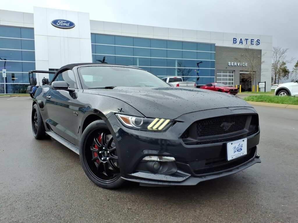 Black 2015 Ford Mustang GT Premium RWD 6-Speed Automatic with Select-Shift 5.0L V8 Ti-VCT **LOCAL TRADE**, 3.55 Ratio Limited Slip Rear Axle, 4-Wheel Disc Brakes, ABS brakes, Air Conditioning, Alloy wheels, Auto-dimming Rear-View mirror, Automatic temperature control, Blind Spot Info System w/Cross-Traffic Alert, Brake assist, Bumpers: body-color, Compass, Convertible roof lining, Delay-off headlights, Driver door bin, Driver vanity mirror, Dual front impact airbags, Dual front side impact airbags, Electronic Stability Control, Equipment Group 401A, Exterior Parking Camera Rear, Four wheel independent suspension, Front anti-roll bar, Front Bucket Seats, Front Center Armrest, Front dual zone A/C, Front fog lights, Front reading lights, Fully automatic headlights, Garage door transmitter, Glass rear window, HD Radio, Heated door mirrors, Heated front seats, High-Intensity Discharge Headlights, Illuminated entry, Knee airbag, Leather Bucket Seats, Leather Shift Knob, Low tire pressure warning, Memory Driver Seat & Mirrors, Occupant sensing airbag, Outside temperature display, Passenger door bin, Passenger vanity mirror, Power convertible roof, Power door mirrors, Power driver seat, Power passenger seat, Power steering, Power windows, Premium AM/FM Stereo w/Single CD Player, Rear anti-roll bar, Rear window defroster, Remote keyless entry, Shaker Pro Audio System, SiriusXM Radio, Speed control, Speed-sensing steering, Speed-Sensitive Wipers, Spoiler, Steering wheel mounted audio controls, SYNC Communications & Entertainment System, Tachometer, Telescoping steering wheel, Tilt steering wheel, Traction control, Trip computer, Turn signal indicator mirrors, Variably intermittent wipers, Ventilated front seats, Voltmeter.