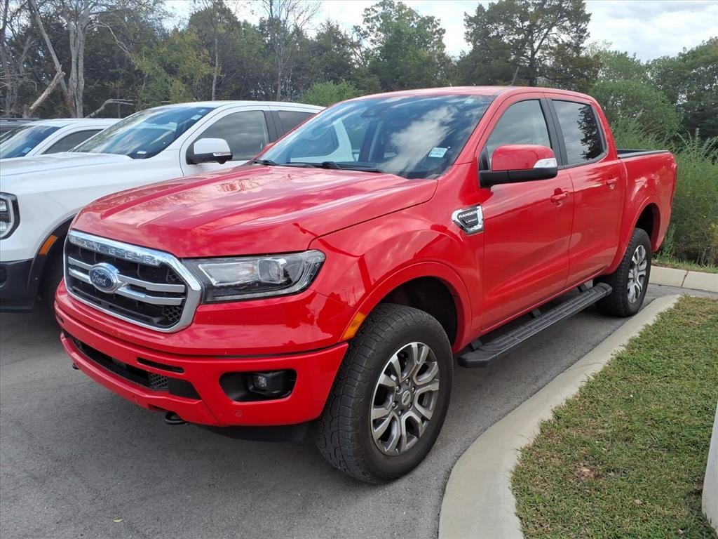 Race Red 2021 Ford Ranger Lariat 4WD 10-Speed Automatic EcoBoost 2.3L I4 GTDi DOHC Turbocharged VCT **LOCAL TRADE**, **ONE OWNER**, LOW MILES!!, NO ACCIDENTS!!, BACKUP CAMERA, ALUMINUM WHEELS, NAVIGATION, APPLE CAR PLAY/ANDROID AUTO, PREMIUM STEREO, USB PORT, 4WD, 3.73 Axle Ratio, 4-Wheel Disc Brakes, 5" Rectangular Black Running Boards, 6 Speakers, ABS brakes, Adaptive Cruise Control, Air Conditioning, Alloy wheels, AM/FM radio: SiriusXM, Auto High-beam Headlights, Auto-dimming Rear-View mirror, Automatic temperature control, Brake assist, Bumpers: body-color, Compass, Delay-off headlights, Driver door bin, Driver vanity mirror, Dual front impact airbags, Dual front side impact airbags, Electronic Stability Control, Emergency communication system: SYNC 3 911 Assist, Equipment Group 501A High, Exterior Parking Camera Rear, Forward Sensing System, Front anti-roll bar, Front Bucket Seats, Front Center Armrest, Front dual zone A/C, Front fog lights, Front Heated Leather-Trimmed Bucket Seats, Front reading lights, Front wheel independent suspension, Fully automatic headlights, Garage door transmitter, Heated door mirrors, Heated front seats, Illuminated entry, Leather Shift Knob, Leather steering wheel, Low tire pressure warning, Navigation, Occupant sensing airbag, Outside temperature display, Overhead airbag, Overhead console, Passenger door bin, Passenger vanity mirror, Power door mirrors, Power driver seat, Power passenger seat, Power steering, Power windows, Radio: B&O Sound System by Bang & Olufsen, Rain-Sensing Wipers, Rear reading lights, Rear seat center armrest, Rear step bumper, Rear window defroster, Remote keyless entry, Remote Start, Speed-sensing steering, spray-in Bedliner, Steering wheel mounted audio controls, SYNC 3, SYNC 3/Apple CarPlay/Android Auto, Technology Package, Telescoping steering wheel, Tilt steering wheel, Traction control, Trip computer, Turn signal indicator mirrors, Variably intermittent wipers, Voltmeter, Wheels: 18" Machined Alum w/Stealth Gray Pockets.