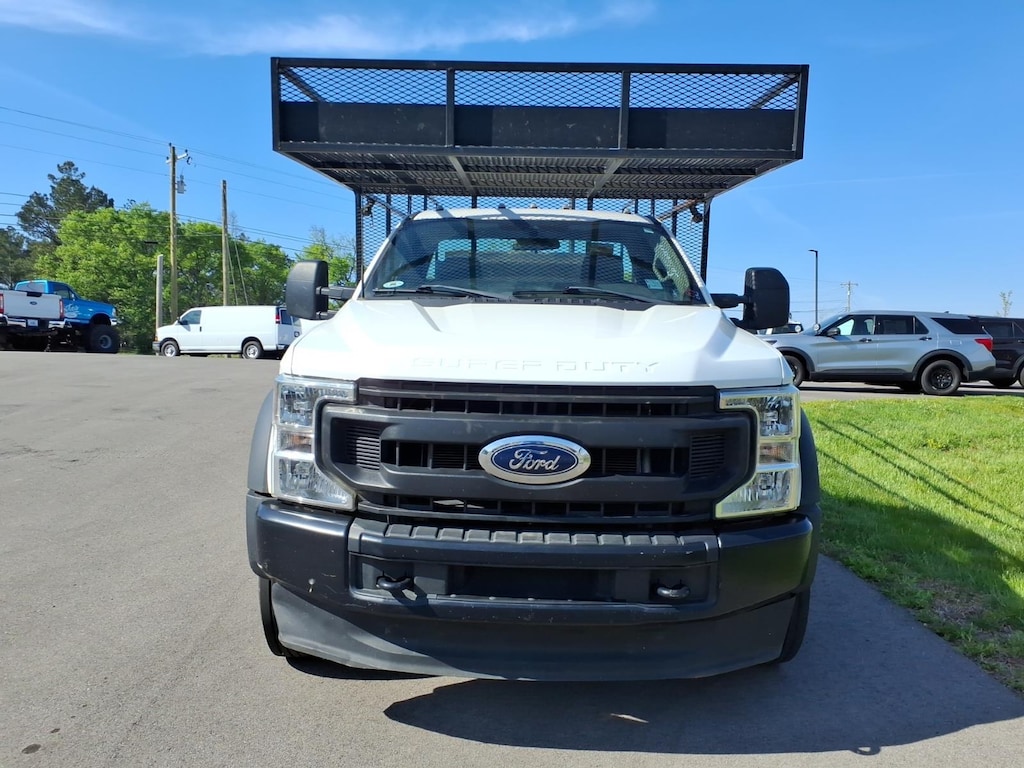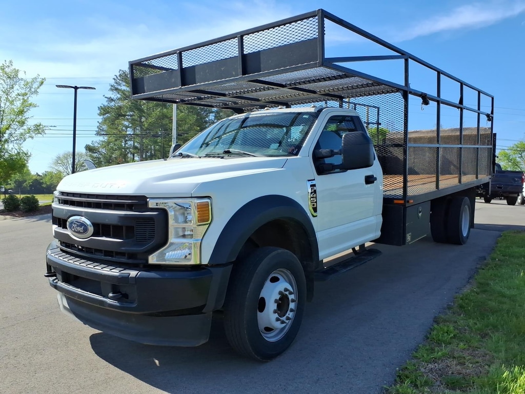 Oxford White 2022 Ford F-450SD XL DRW RWD 10-Speed Automatic 7.3L V8 PFI OHV 16V Federal 335hp **ONE OWNER**, 4 Speakers, 4-Wheel Disc Brakes, 4.88 Axle Ratio, ABS brakes, Air Conditioning, AM/FM radio, AM/FM Stereo w/MP3 Player, Brake assist, Compass, Delay-off headlights, Dual front impact airbags, Dual front side impact airbags, Dual rear wheels, Front anti-roll bar, Front Center Armrest w/Storage, Front reading lights, Fully automatic headlights, GVWR: 16,500 lb Payload Package, HD Vinyl 40/20/40 Split Bench Seat, Order Code 650A, Outside temperature display, Overhead airbag, Passenger cancellable airbag, Passenger vanity mirror, Platform Running Boards, Power steering, Rear anti-roll bar, Steering wheel mounted audio controls, SYNC Communications & Entertainment System, Tachometer, Telescoping steering wheel, Tilt steering wheel, Traction control, Trip computer, Variably intermittent wipers, Wheels: 19.5" x 6" Argent Painted Steel.