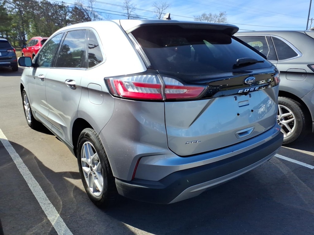 Silver Metallic 2024 Ford Edge SEL AWD 8-Speed Automatic EcoBoost 2.0L I4 GTDi DOHC Turbocharged VCT **ONE OWNER**, NO ACCIDENTS!!, AWD, 3.80 Axle Ratio, 4-Wheel Disc Brakes, 6 Speakers, ABS brakes, ActiveX Trimmed Heated Bucket Seats, Air Conditioning, Alloy wheels, AM/FM radio: SiriusXM with 360L, AM/FM Stereo, Auto High-beam Headlights, Auto-dimming Rear-View mirror, Automatic temperature control, Brake assist, Bumpers: body-color, Compass, Delay-off headlights, Driver door bin, Driver vanity mirror, Dual front impact airbags, Dual front side impact airbags, Electronic Stability Control, Equipment Group 201A, FordPass Connect, Four wheel independent suspension, Front anti-roll bar, Front Bucket Seats, Front Center Armrest w/Storage, Front dual zone A/C, Front License Plate Bracket, Front reading lights, Fully automatic headlights, Heated door mirrors, Heated front seats, Illuminated entry, Knee airbag, Leather steering wheel, Low tire pressure warning, Occupant sensing airbag, Outside temperature display, Overhead airbag, Overhead console, Panic alarm, Passenger door bin, Passenger vanity mirror, Power door mirrors, Power driver seat, Power Liftgate, Power passenger seat, Power steering, Power windows, Rear anti-roll bar, Rear Parking Sensors, Rear reading lights, Rear seat center armrest, Rear window defroster, Rear window wiper, Remote keyless entry, SiriusXM w/360L, Speed control, Speed-Sensitive Wipers, Split folding rear seat, Spoiler, Steering wheel mounted audio controls, SYNC 4A w/Enhanced Voice Recognition, Tachometer, Telescoping steering wheel, Tilt steering wheel, Traction control, Trip computer, Variably intermittent wipers, Wheels: 18" Sparkle Silver-Painted Aluminum.