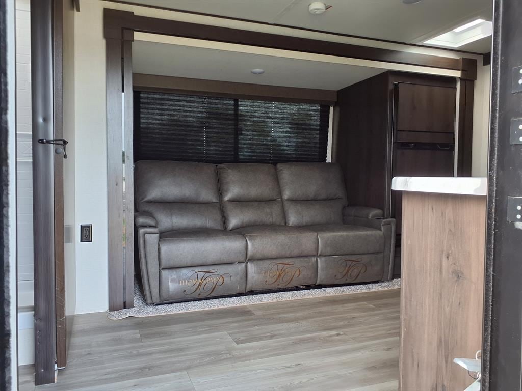 This 26FT dual axle camper sleeps 4 with a 60 x 80 Queen Bed & theatre seating. Main features include: 1 main power slide, 17ft power awning, 32" Roku TV, 8 cu ft. fridge/freezer, Furrion microwave & oven, dual propane tanks, Furrion A/C Unit, 6g water heater, power front jack, and much more!!!