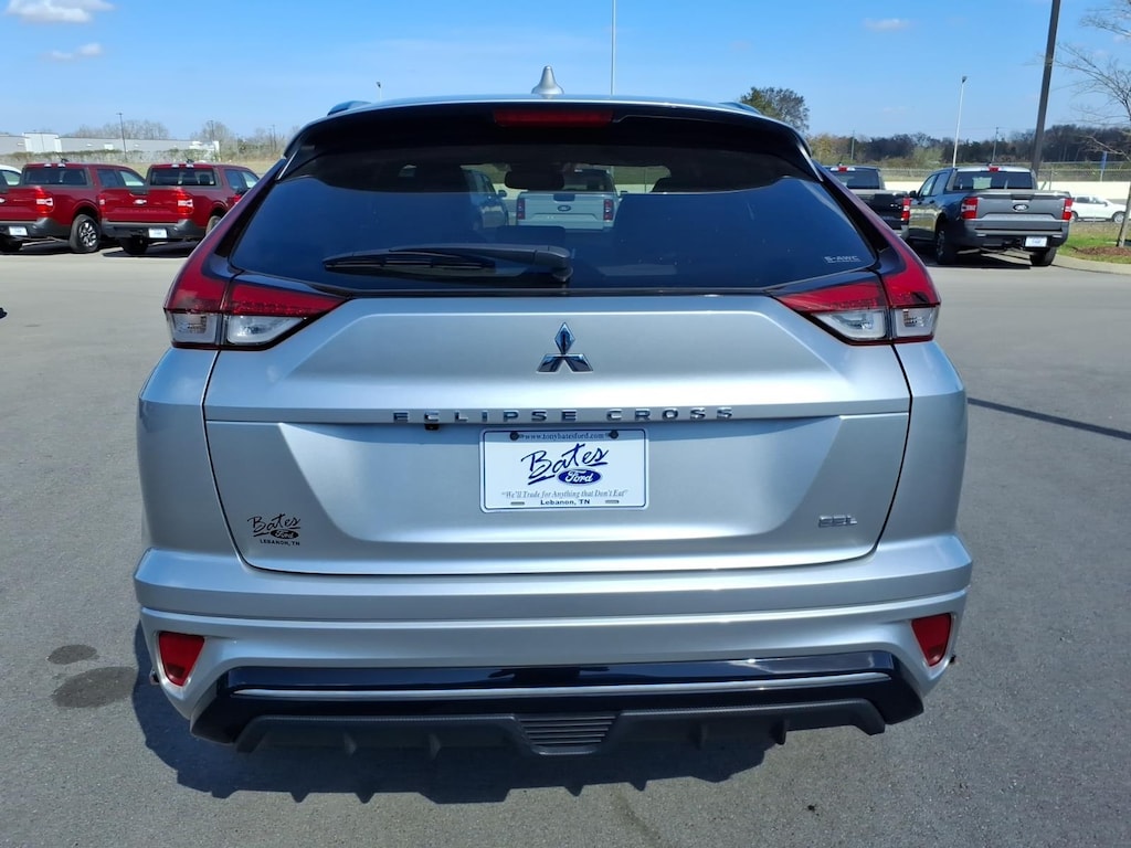 Mercury Gray Metallic 2023 Mitsubishi Eclipse Cross SEL 4WD CVT 1.5L I4 DI Turbocharged DOHC 16V LEV3-ULEV70 152hp **LOCAL TRADE**, 4-Wheel Disc Brakes, 6.39 Axle Ratio, ABS brakes, Air Conditioning, Alloy wheels, Automatic temperature control, Bumpers: body-color, Driver door bin, Driver vanity mirror, Dual front impact airbags, Dual front side impact airbags, Exterior Parking Camera Rear, Four wheel independent suspension, Front anti-roll bar, Front Bucket Seats, Front Center Armrest, Front fog lights, Front reading lights, Heated door mirrors, Illuminated entry, Knee airbag, Low tire pressure warning, Occupant sensing airbag, Outside temperature display, Overhead airbag, Overhead console, Passenger door bin, Passenger vanity mirror, Power door mirrors, Power steering, Power windows, Radio data system, Rear anti-roll bar, Rear seat center armrest, Rear window defroster, Rear window wiper, Remote keyless entry, Speed control, Split folding rear seat, Spoiler, Steering wheel mounted audio controls, Tachometer, Telescoping steering wheel, Tilt steering wheel, Traction control, Trip computer, Turn signal indicator mirrors, Variably intermittent wipers, Wheels: 18" Two-Tone Alloy.