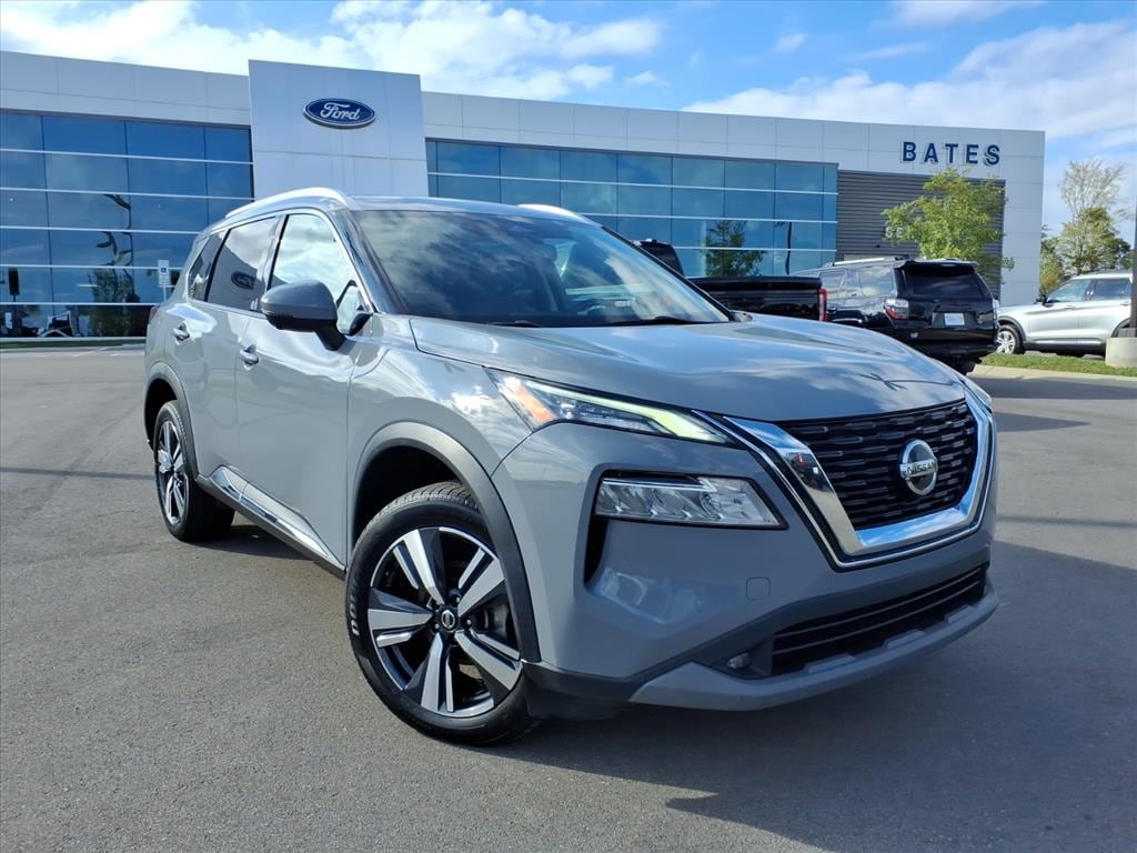Boulder Gray Pearl 2021 Nissan Rogue SL AWD CVT with Xtronic 2.5L I4 DOHC 16V **ONE OWNER**, AWD, 19" Aluminum Alloy Wheels, 4-Wheel Disc Brakes, 6 Speakers, ABS brakes, Air Conditioning, Alloy wheels, AM/FM Radio, AM/FM radio, Auto High-beam Headlights, Auto-dimming Rear-View mirror, Automatic temperature control, Black Splash Guards (Set of 4), Brake assist, Bumpers: body-color, Delay-off headlights, Driver door bin, Driver vanity mirror, Dual front impact airbags, Dual front side impact airbags, Electronic Stability Control, Exterior Parking Camera Rear, Four wheel independent suspension, Front anti-roll bar, Front Bucket Seats, Front Center Armrest, Front dual zone A/C, Front fog lights, Front reading lights, Fully automatic headlights, Heated door mirrors, Heated Front Bucket Seats, Heated front seats, Heated steering wheel, Illuminated entry, Knee airbag, Leather steering wheel, Leather-Appointed Seat Trim, Low tire pressure warning, Memory seat, NissanConnect featuring Apple CarPlay and Android Auto, Occupant sensing airbag, Outside temperature display, Overhead airbag, Overhead console, Passenger door bin, Passenger vanity mirror, Power door mirrors, Power driver seat, Power Liftgate, Power moonroof, Power passenger seat, Power steering, Power windows, Radio data system, Rear air conditioning, Rear anti-roll bar, Rear Parking Sensors, Rear seat center armrest, Rear side impact airbag, Rear window defroster, Rear window wiper, Remote keyless entry, Speed control, Speed-Sensitive Wipers, Split folding rear seat, Spoiler, Steering wheel mounted audio controls, Tachometer, Telescoping steering wheel, Tilt steering wheel, Traction control, Trip computer, Turn signal indicator mirrors, Variably intermittent wipers.