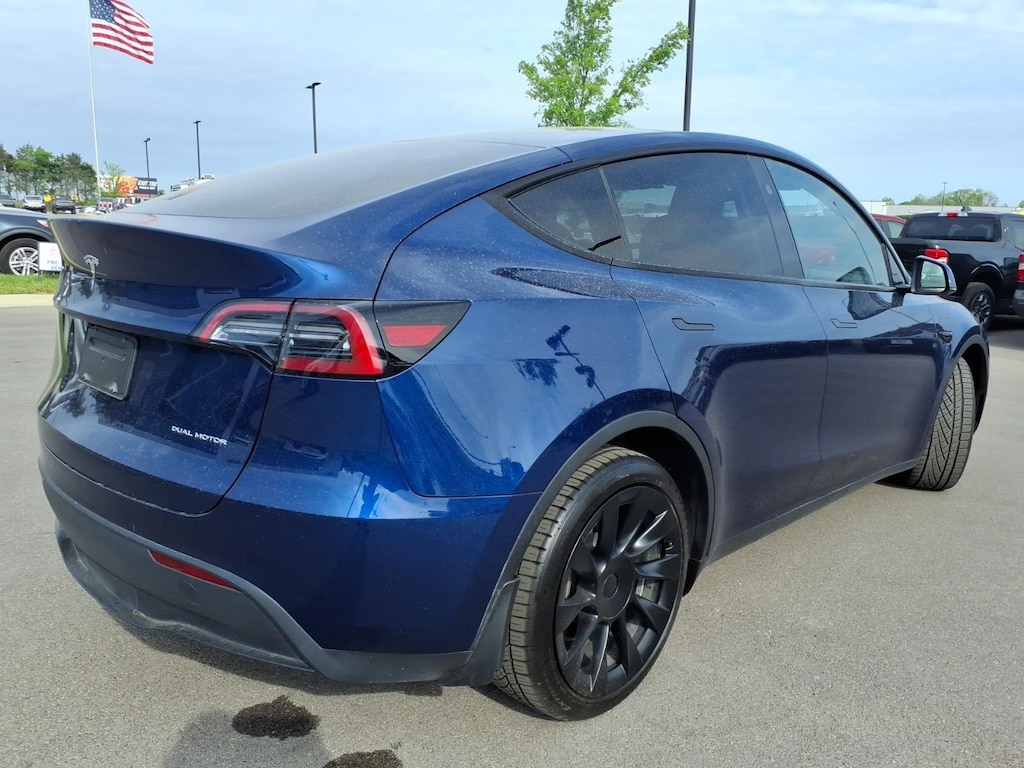 Blue 2024 Tesla Model Y Long Range AWD 1-Speed Automatic Electric Motor **ONE OWNER**, 14 Speakers, 4-Wheel Disc Brakes, 5 Seat Interior, 9.0 Axle Ratio, ABS brakes, Air Conditioning, Alloy wheels, Audio memory, Auto High-beam Headlights, Auto tilt-away steering wheel, Auto-dimming door mirrors, Auto-dimming Rear-View mirror, Automatic temperature control, Brake assist, Bumpers: body-color, Compass, Delay-off headlights, Driver door bin, Driver vanity mirror, Dual front impact airbags, Dual front side impact airbags, Electronic Stability Control, Exterior Parking Camera Rear, Four wheel independent suspension, Front anti-roll bar, Front Bucket Seats, Front Center Armrest, Front dual zone A/C, Front fog lights, Front reading lights, Fully automatic headlights, Genuine wood dashboard insert, Heated door mirrors, Heated front seats, Heated rear seats, Heated steering wheel, HVAC memory, Illuminated entry, Knee airbag, Lane Departure Warning System, Low tire pressure warning, Memory seat, Navigation System, Occupant sensing airbag, Outside temperature display, Overhead airbag, Passenger door bin, Passenger vanity mirror, Power door mirrors, Power driver seat, Power Liftgate, Power passenger seat, Power steering, Power windows, Radio: Premium Audio System w/13 Speakers, Rain sensing wipers, Rear reading lights, Rear seat center armrest, Rear window defroster, Speed control, Speed-sensing steering, Split folding rear seat, Steering wheel memory, Steering wheel mounted A/C controls, Steering wheel mounted audio controls, Telescoping steering wheel, Tilt steering wheel, Traction control, Trip computer, Variably intermittent wipers, Vegan Leather Seat Trim, Wheels: 19" x 9.5" Gemini Dark.