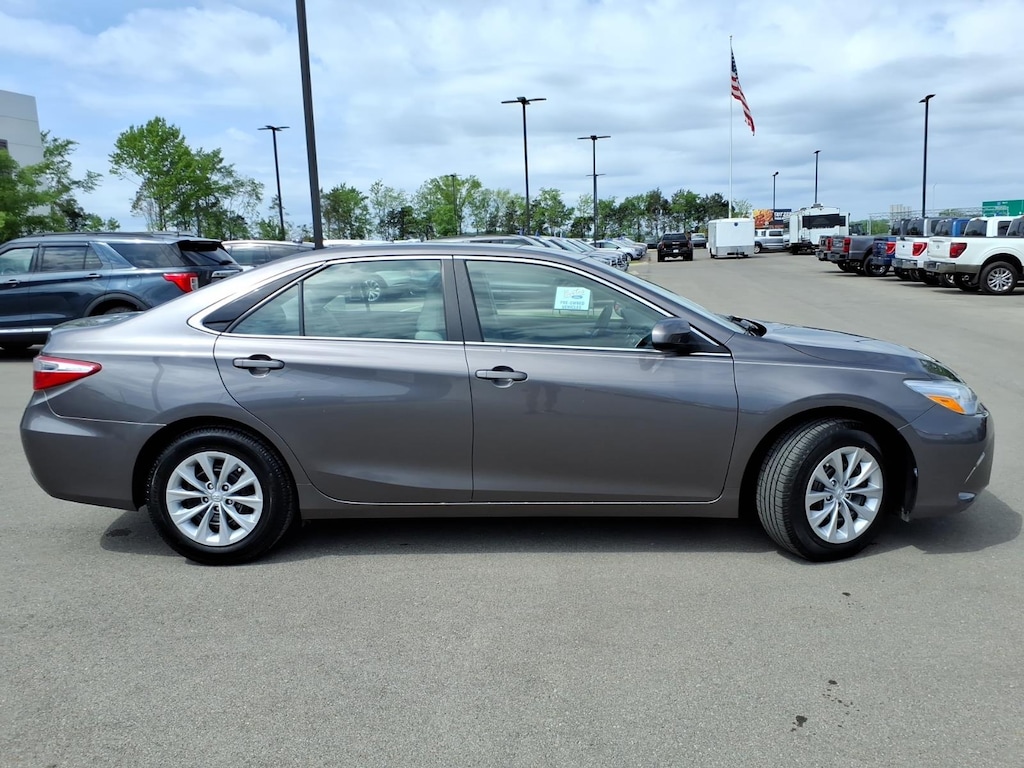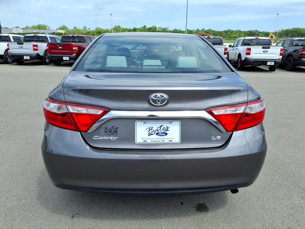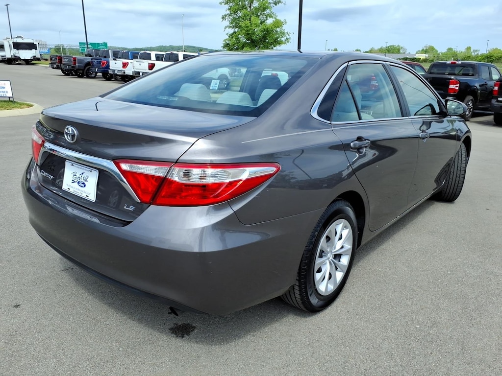 Predawn Gray Mica 2015 Toyota Camry LE FWD 6-Speed Automatic 2.5L I4 SMPI DOHC **LOCAL TRADE**, **ONE OWNER**, Ash Cloth, 4-Wheel Disc Brakes, 6 Speakers, ABS brakes, Air Conditioning, Brake assist, Bumpers: body-color, CD player, Delay-off headlights, Driver door bin, Driver vanity mirror, Dual front impact airbags, Dual front side impact airbags, Electronic Stability Control, Exterior Parking Camera Rear, Four wheel independent suspension, Front anti-roll bar, Front Bucket Seats, Front Center Armrest, Front reading lights, Fully automatic headlights, Heated door mirrors, Illuminated entry, Knee airbag, Low tire pressure warning, Occupant sensing airbag, Outside temperature display, Overhead airbag, Overhead console, Passenger door bin, Passenger vanity mirror, Power door mirrors, Power driver seat, Power steering, Power windows, Radio: Entune Audio Plus, Rear anti-roll bar, Rear seat center armrest, Rear side impact airbag, Rear window defroster, Remote keyless entry, Speed control, Speed-sensing steering, Split folding rear seat, Steering wheel mounted audio controls, Tachometer, Telescoping steering wheel, Tilt steering wheel, Traction control, Trip computer, Variably intermittent wipers.