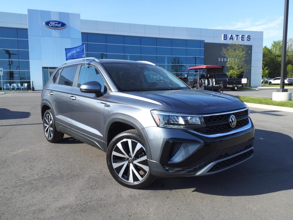 Platinum Gray Metallic 2024 Volkswagen Taos 1.5T SE FWD 8-Speed Automatic with Tiptronic 1.5L I4 Turbocharged DOHC 16V LEV3-SULEV30 158hp Virtual Walkaround Available!.